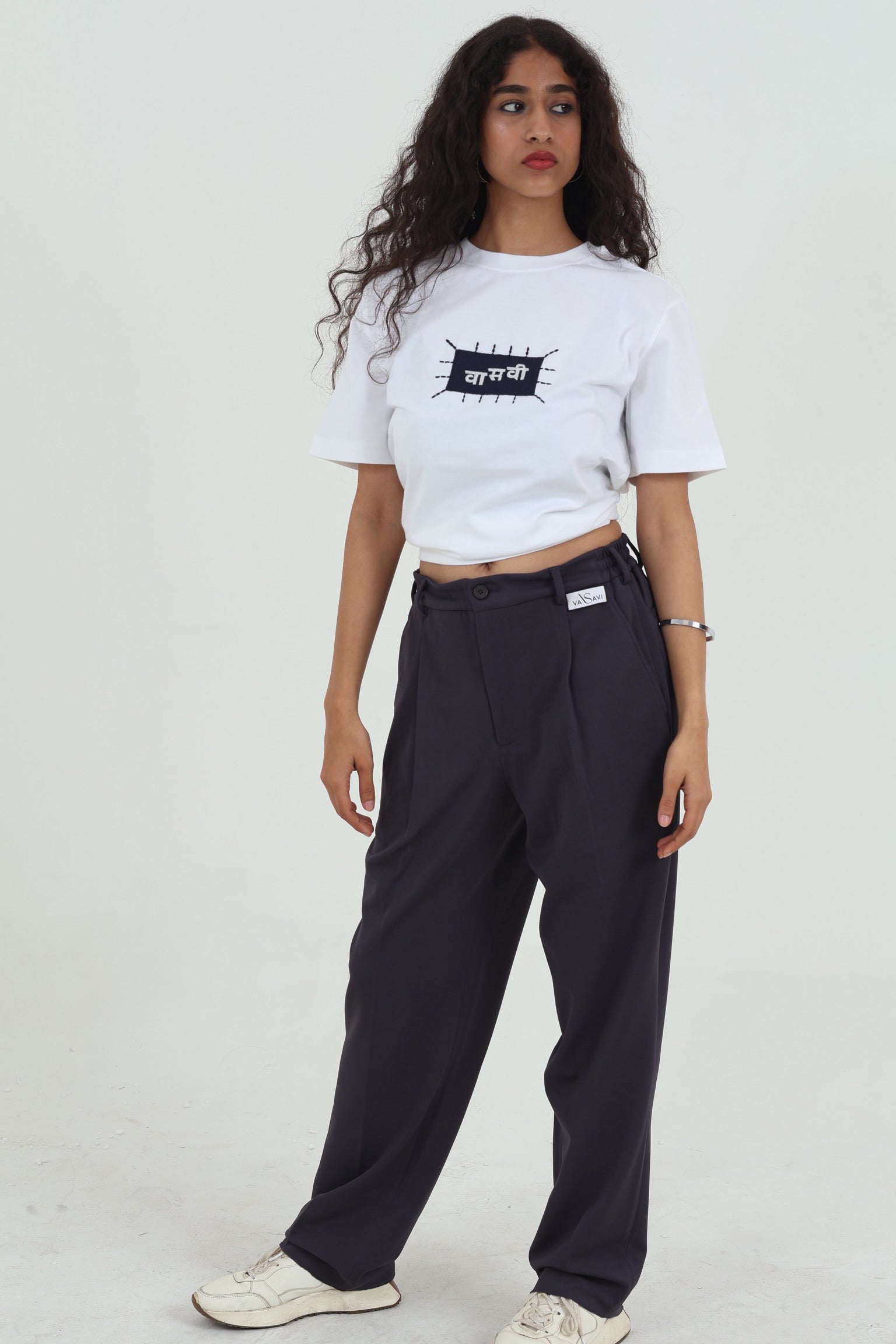 This white t-shirt blends classic denim with modern design, combining timeless fabric with contemporary details. The embroidered brand logo and hand-stitched lines pay homage to traditional craftsmanship, while the unique denim patch brings a future-forward twist to a classic piece.